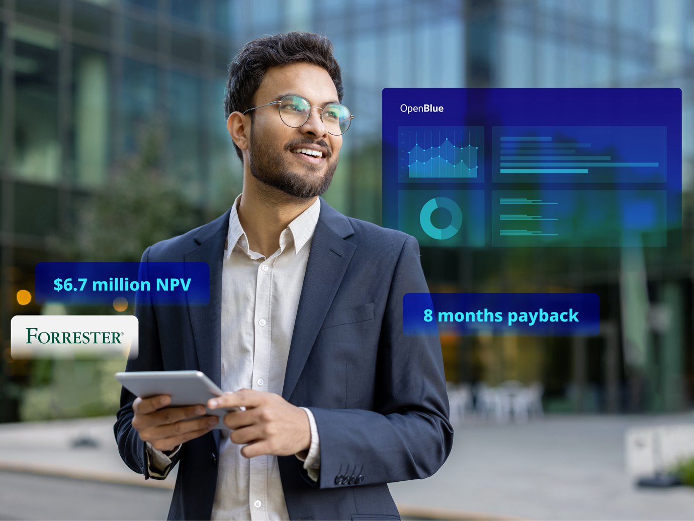 The results of the commissioned Total Economic Impact™ of OpenBlue, conducted by Forrester Consulting, April 2025 are in, revealing $11.0m in business benefits over three years, with a payback period of eight months for a composite organization representative of interviewed customers.